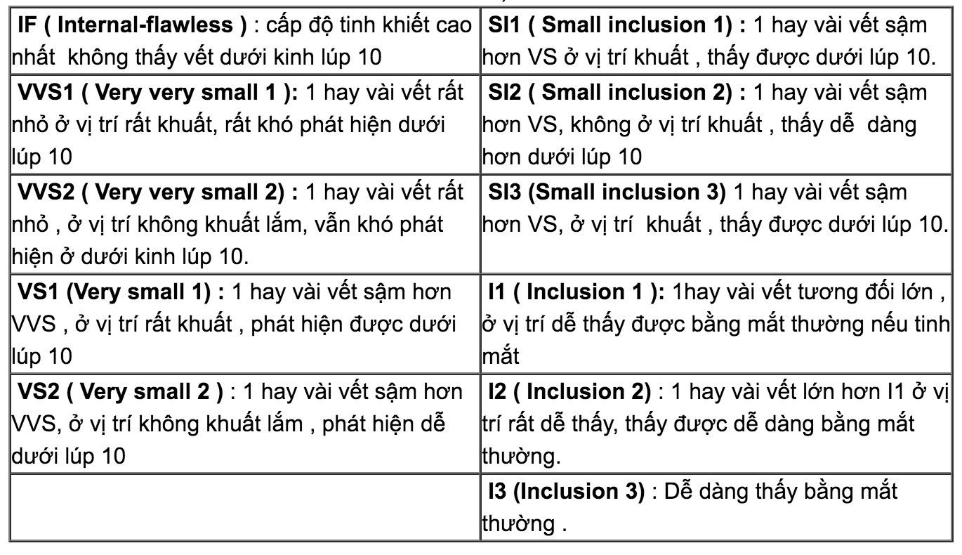 + C3 : CLARITY ( GIÁ TRỊ VỀ ĐỘ TINH KHIẾT)