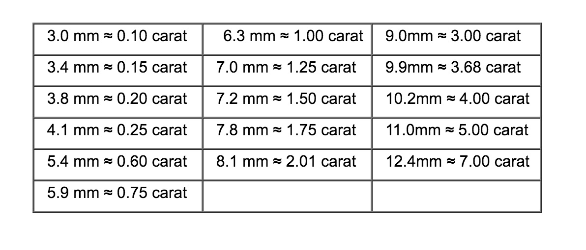 -       Tại Việt Nam , Kim Cương thường được tính bằng li (mm), nên ở đây có bảng quy đổi tương ứng từ Carat sang li :